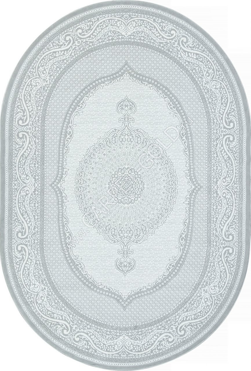 Ковер турецкий E364AP SIROCCO (PP Heatset Высокоплотный, серый, белый) овальный